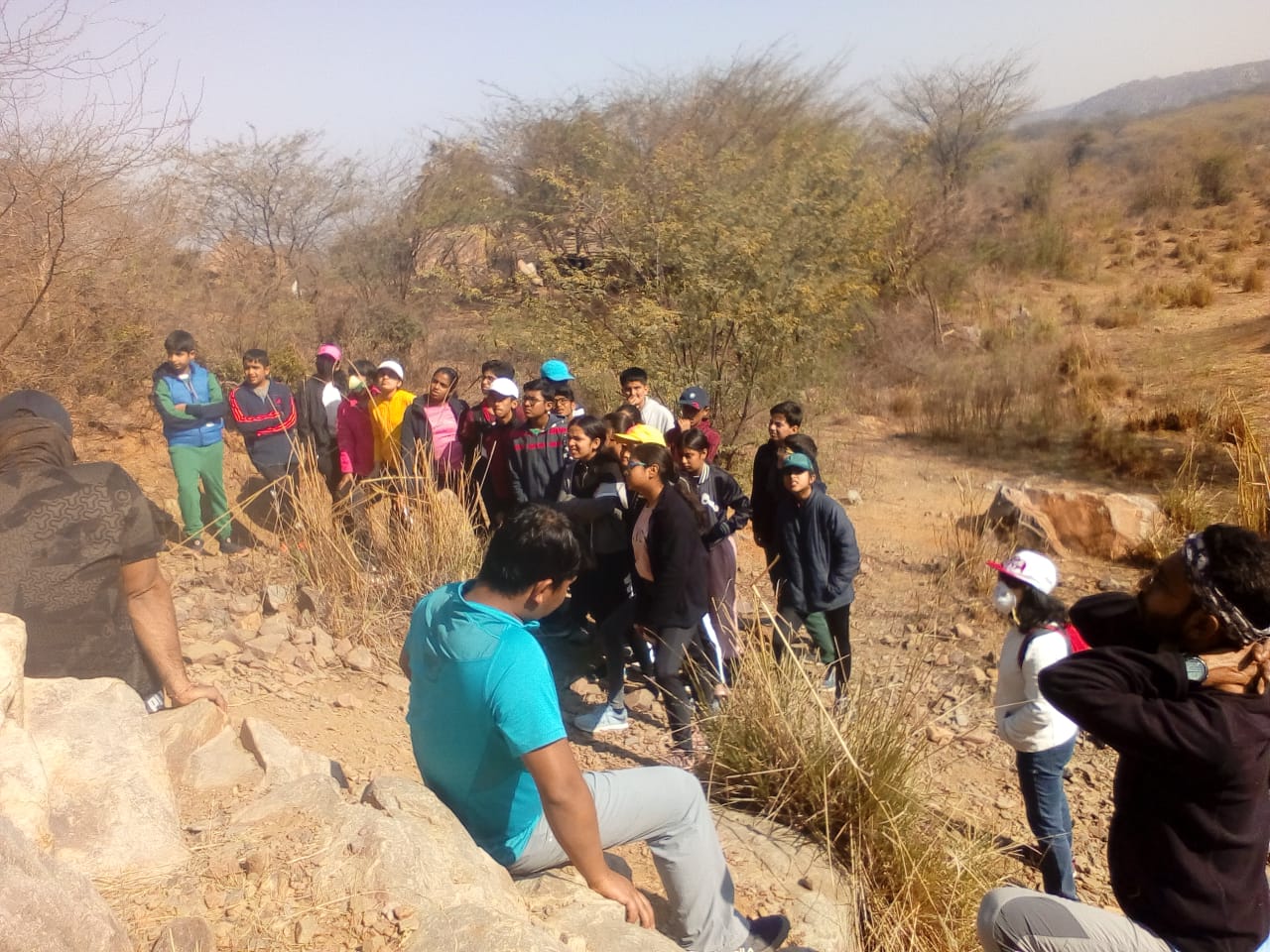 After breakfast, 7 F went for outdoor activities for the day, where they tried their hands on bouldering and learnt to climb and grapple with rocks, in the Aravalis. At the campsite, 7 H students were divided into two groups and worked with the respective theatre experts on the theme of journey from fear to courage. They did a bunch of team building activities along with theatre skills building activities.