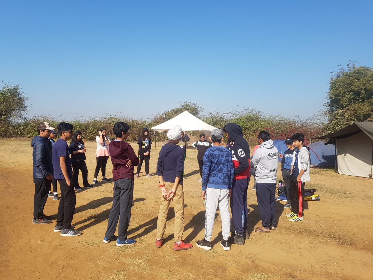 After a relaxing bus ride, students of 7 F and 7 H reached the camp, looking forward to the excitement and challenges ahead. Students were introduced to the the camp coordinators and were given instructions about the layout, general hygiene and safety. They were allocated tents and served a sumptuous breakfast of poori and aloo.